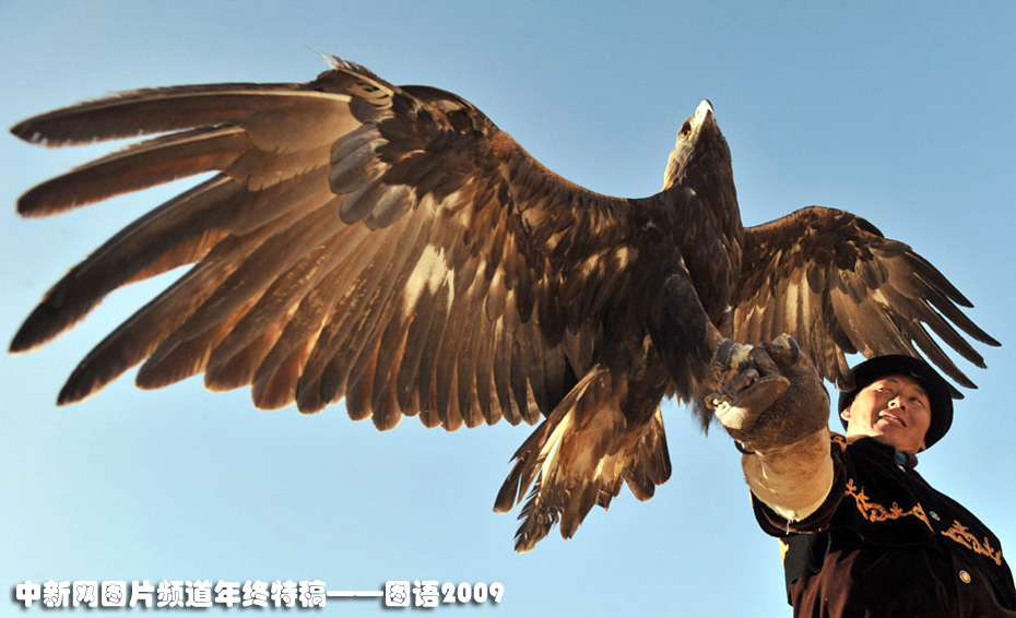 吉尔吉斯斯坦举行传统“狩猎节”——10月30日,在吉尔吉斯斯坦Bokonbayevo传统的狩猎节上,一只捕猎鸟在追猎物。