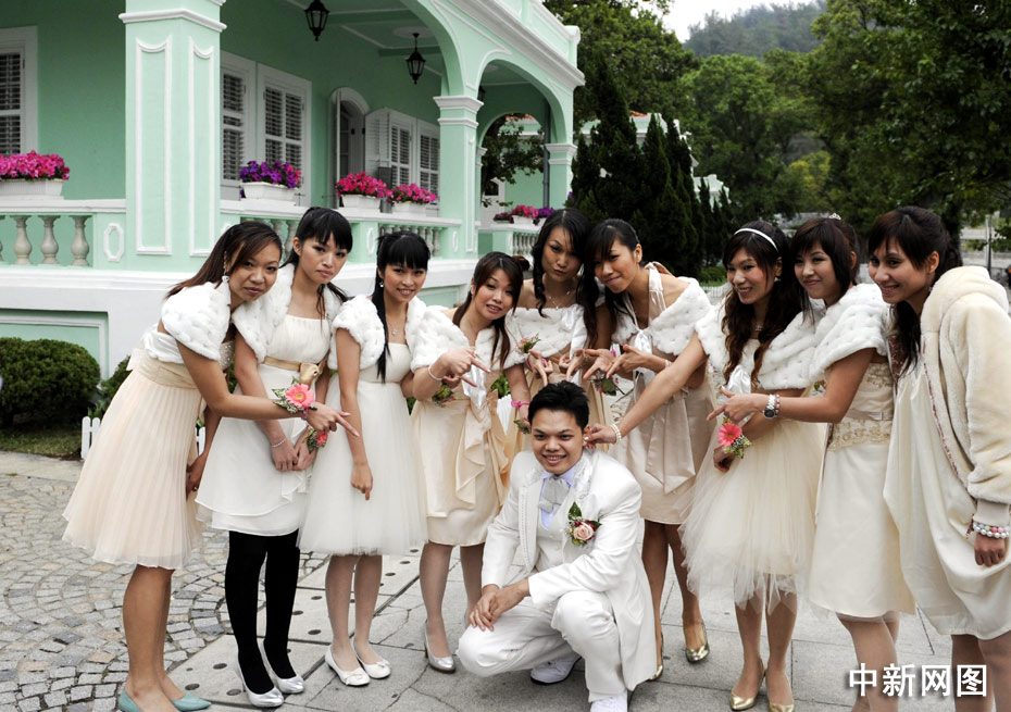 澳门凼仔,新人的俏皮婚礼。中新社记者 廖攀 摄