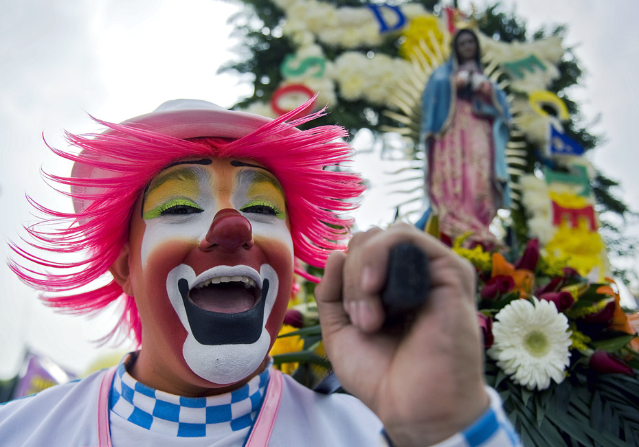 12月16日,墨西哥小丑们聚集在首都墨西哥城参加街头游行活动,700多名小丑用自己五彩斑斓的服饰和滑稽可笑的表演为沿途的人们带来欢笑。图片来源:中国新闻网