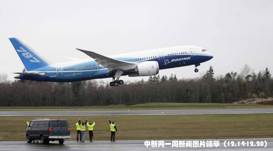 15日(周二),美国波音公司最新梦幻客机波音787终于在华盛顿州升空试飞,两万五千多人忍受寒冷观看了试飞过程。图片来源:中国新闻网