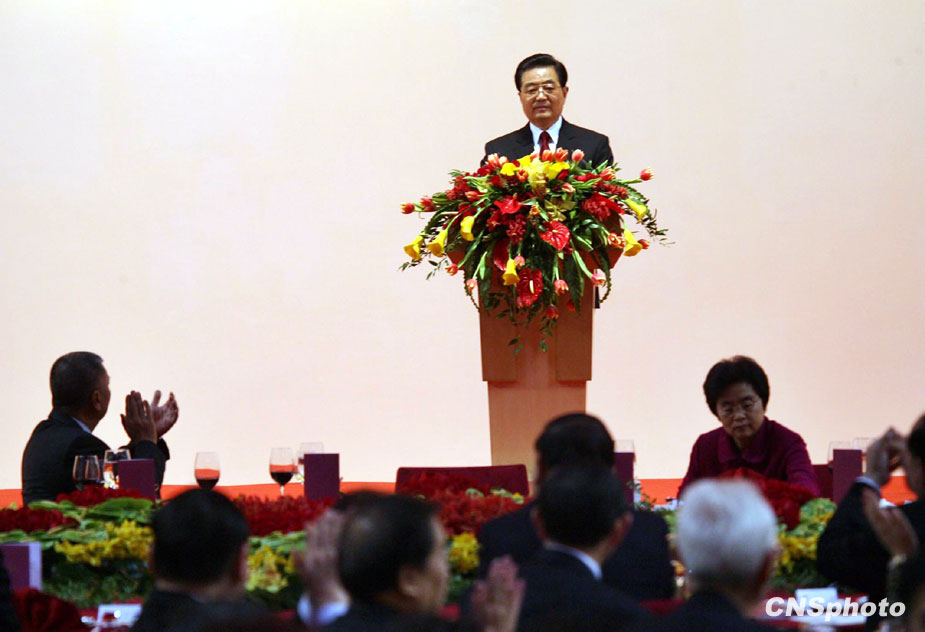 12月19日,国家主席胡锦涛在澳门出席特区政府举行的欢迎晚宴并致辞。中新社发 郑祚声 摄