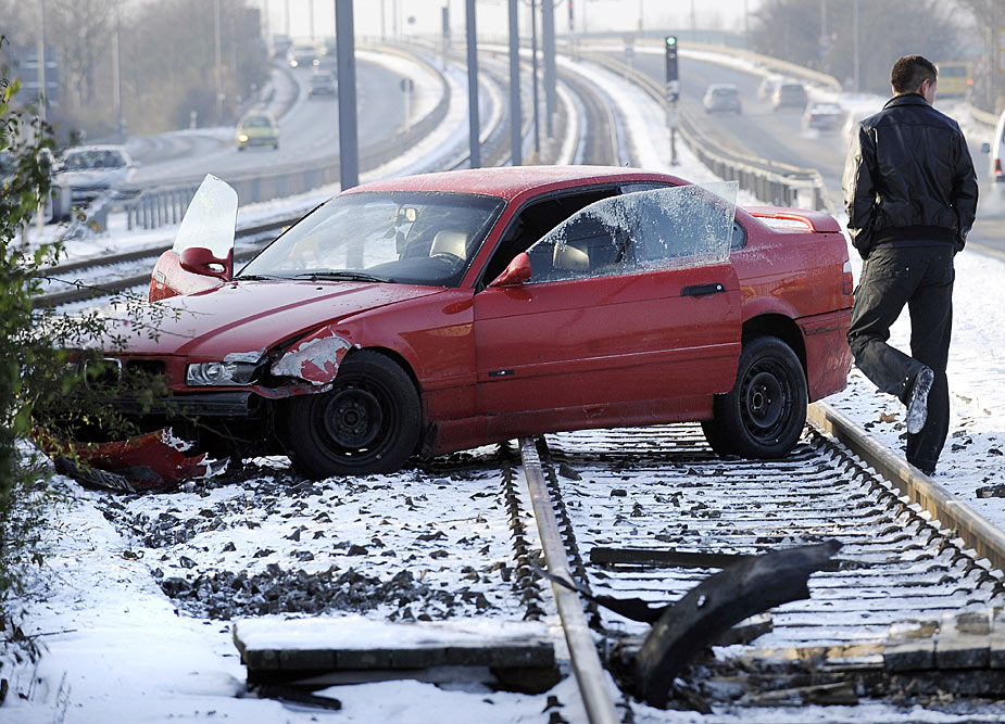 图为12月19日,严寒和大雪使德国的一些车辆失控造成交通事故。