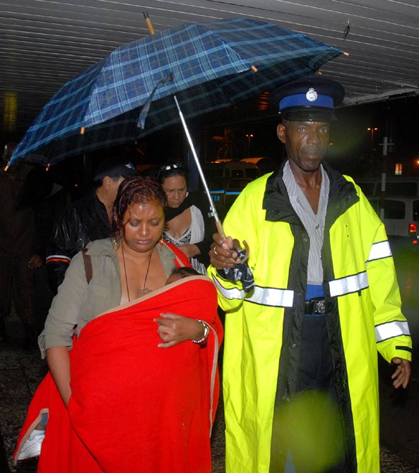 美国航空公司一架波音737-800型客机22日晚抵达牙买加首都金斯敦诺曼曼利国际机场时冲出跑道,致机上154人中的92人被送往医院,但均无生命危险。图为疏散受伤的乘客。