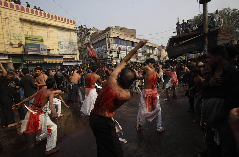 12月28日,印度穆斯林庆祝阿舒拉节。一些当地穆斯林在仪式上用铁鞭抽打自己,以此庆祝节日。图片来源:中国新闻网