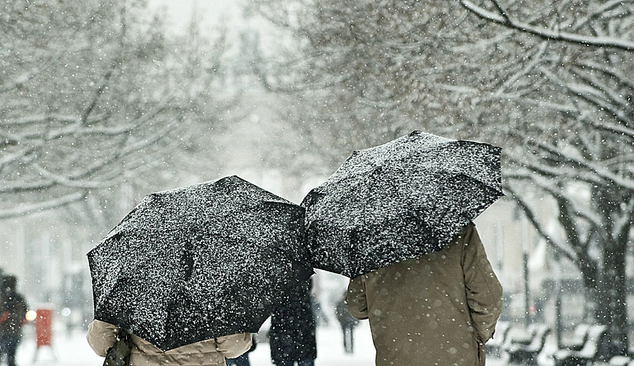 图为12月30日,德国柏林降下大雪,人们打伞走在大街让。