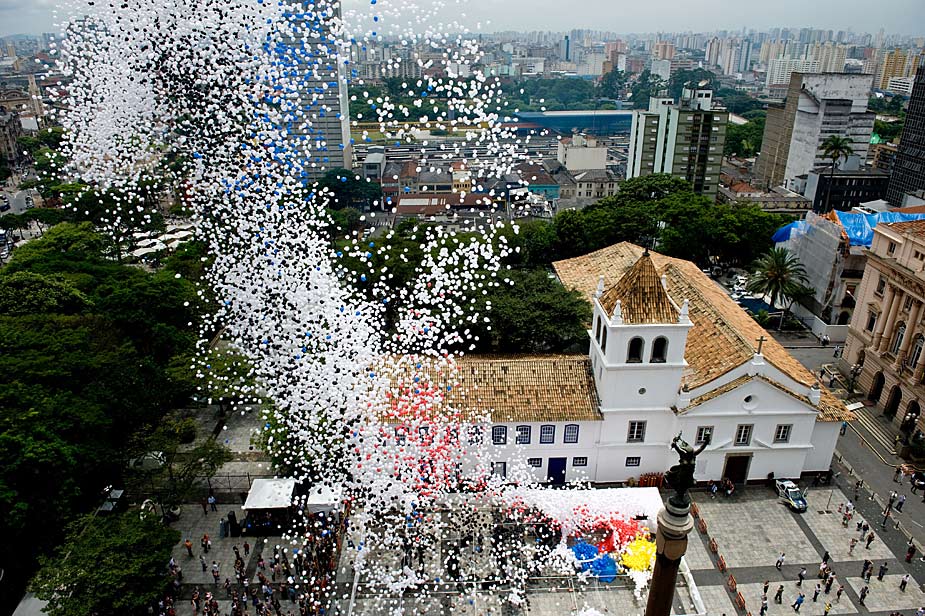 图为12月31日,巴西人在圣保罗放飞可以分解的气球,迎接新年的到来。