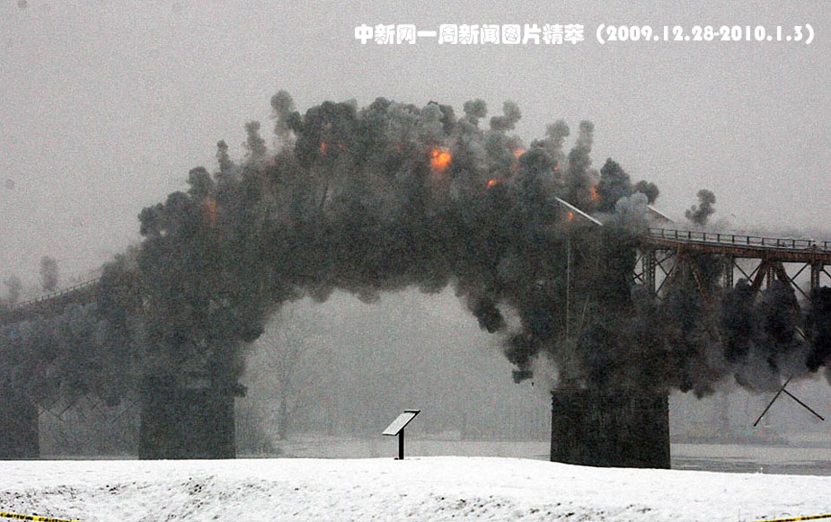 周一(28日),连接纽约州克朗波音特与佛蒙特州艾迪生的尚普兰湖大桥被爆破。尚普兰大桥全长2,184英尺(约合665米),是同类桥梁中第一座被用于公路交通的,其使用历史达80年。由于混凝土桥墩受到腐蚀,尚普兰大桥在今年10月被关闭,新的大桥预计在2011年夏天开放。图片来源:中国新闻网