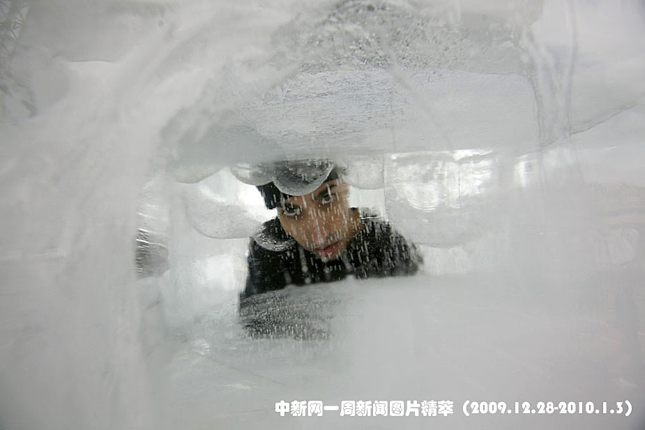 周二(29日),以色列魔术师赫齐·达扬在位于特拉维夫的拉宾广场上,达扬赤身进入一块8吨重的冰块里,开始了挑战冰屋生存世界纪录之旅。图片来源:中国新闻网