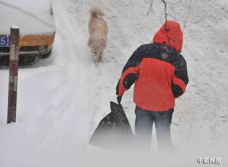 1月3日,贝加尔湖东移南下强冷空气裹挟大雪铺天盖地席卷北京。雪厚路滑加上大幅降温,给交通和市民出行带来严重影响。图片来源:中国新闻网