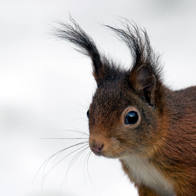 比利时的树林里一只头型超酷的红松鼠在玩雪。