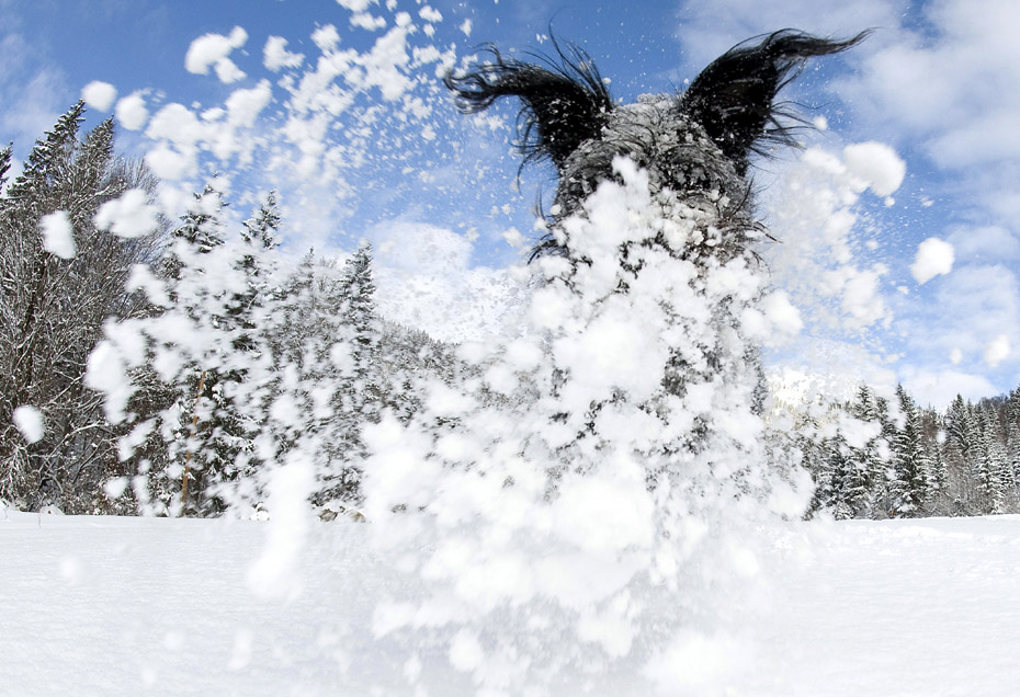 1月3日,奥地利的萨尔茨堡省,一只小狗在雪地里撒欢。
