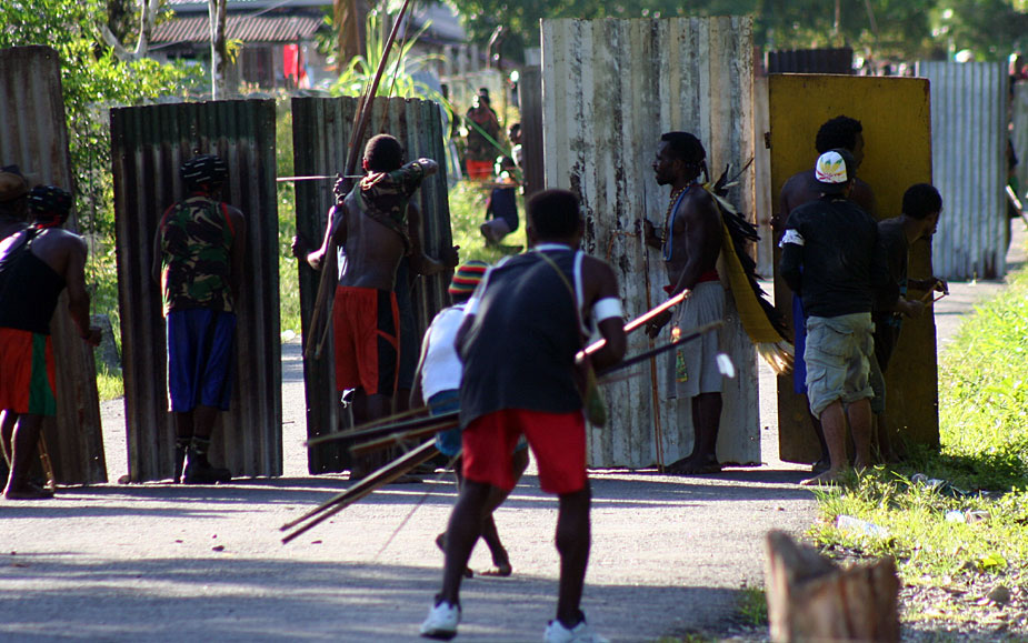 1月6日,印尼巴布省的两个村落因债务问题引发了武装争斗,双方手持弓箭等原始武器进行了一场原始的战争。目前,这场冲突已经造成多人伤亡。图片来源:中国新闻网