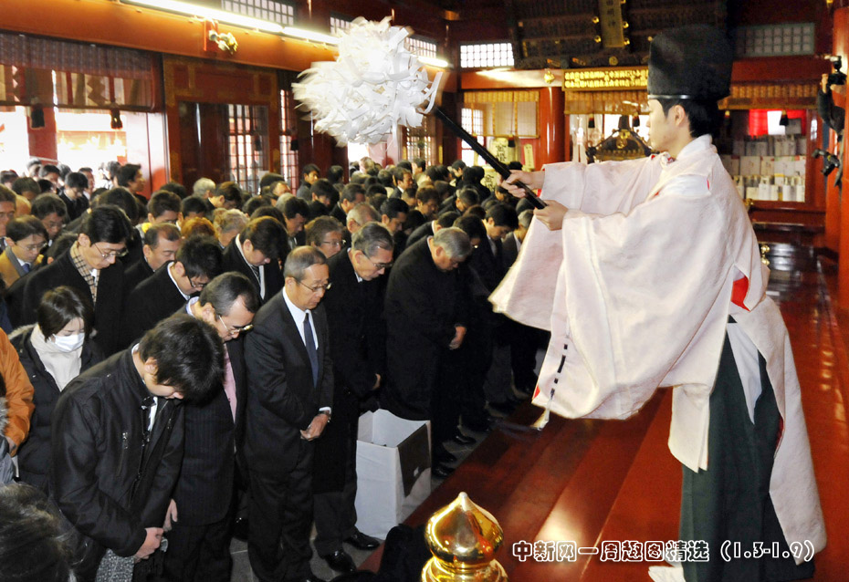 2010年1月4日,日本东京,商人聚集在神田神社里祈福,希望在新的一年里生意兴隆。当天是日本股市2010年首个交易日,市场升势延续。图片来源:中国新闻网>>点击观看详细内容