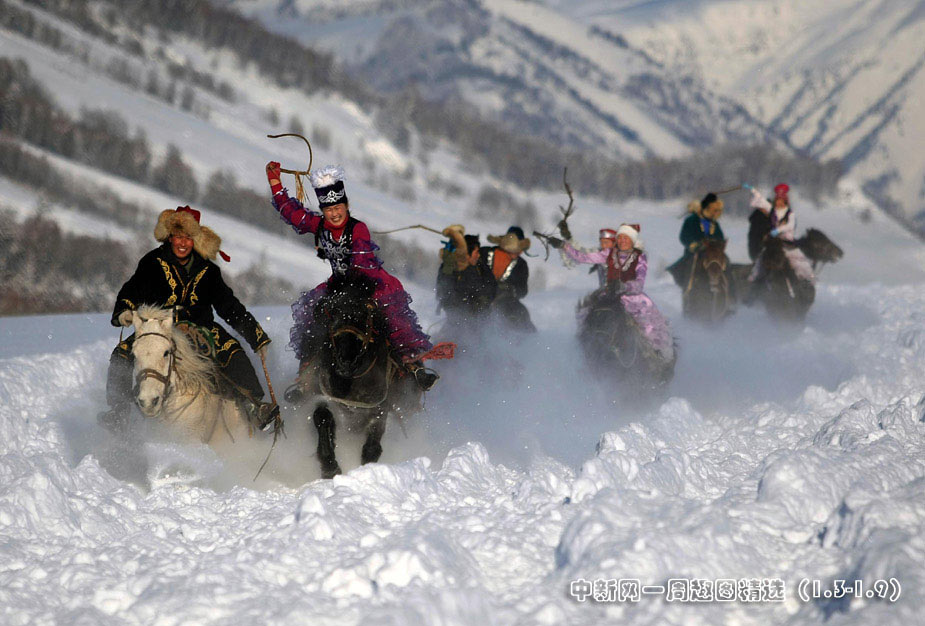 新年伊始,新疆布尔津县喀纳斯景区哈萨克族牧民在雪中表演传统节目——姑娘追。图片来源:中国新闻网>>点击观看详细内容