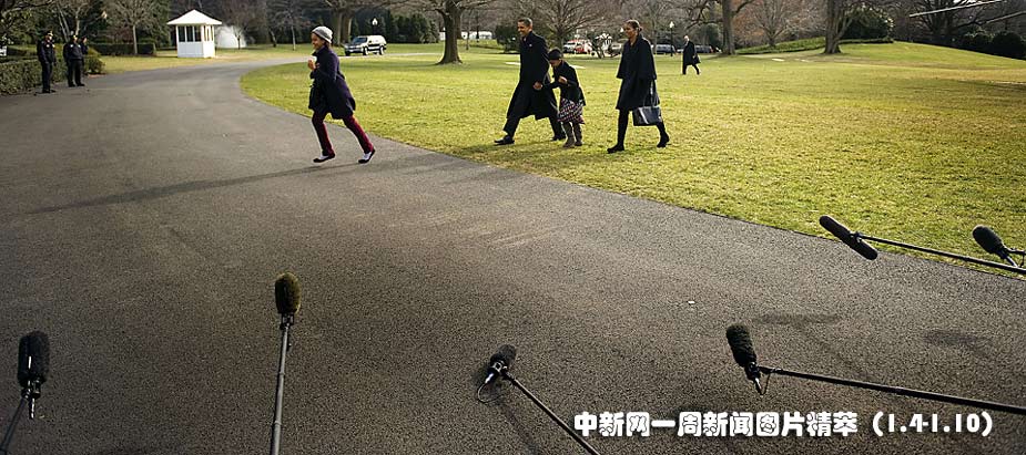 1月4日(周一),美国总统奥巴马(Barack Obama)一家结束了在夏威夷的度假,返回白宫。图片来源:中国新闻网