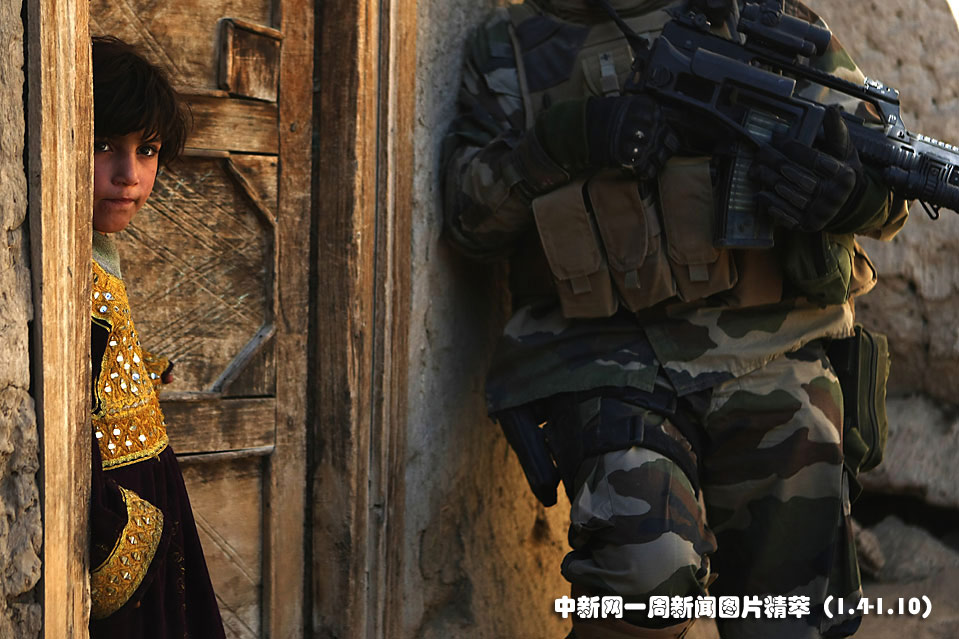 1月6日(周三),阿富汗卡披萨,一名阿富汗女孩在看着法国士兵挨家挨户搜查恐怖分子。图片来源:中国新闻网