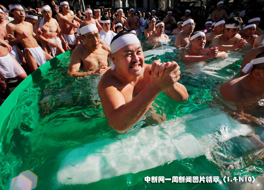 1月10日(周日),日本东京,一群健身爱好者在冷水中浸泡,“比拼”毅力。图片来源:中国新闻网