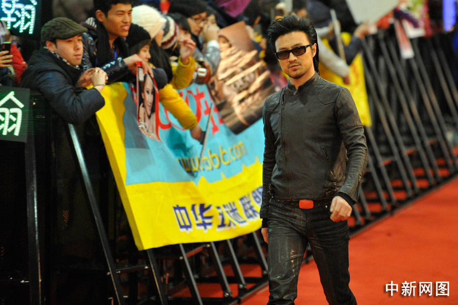 图为汪峰个性黑衣超酷出场。中新网记者 金硕 摄