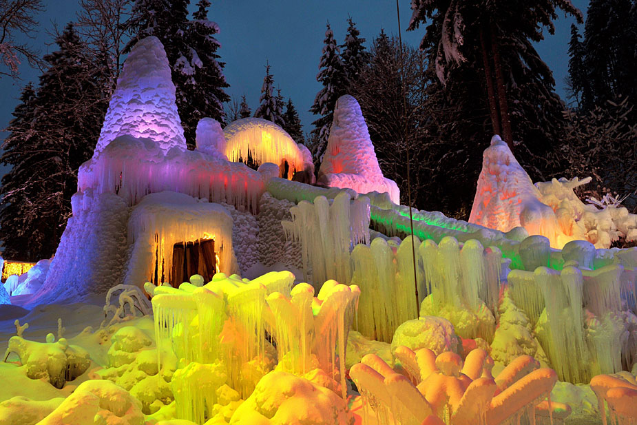 近日,瑞士艺术家卡尔豪斯在瑞士黑湖附近的弗里堡修建了一座美仑美奂的冰宫,令众多游客流连忘返。图片来源:中国新闻网