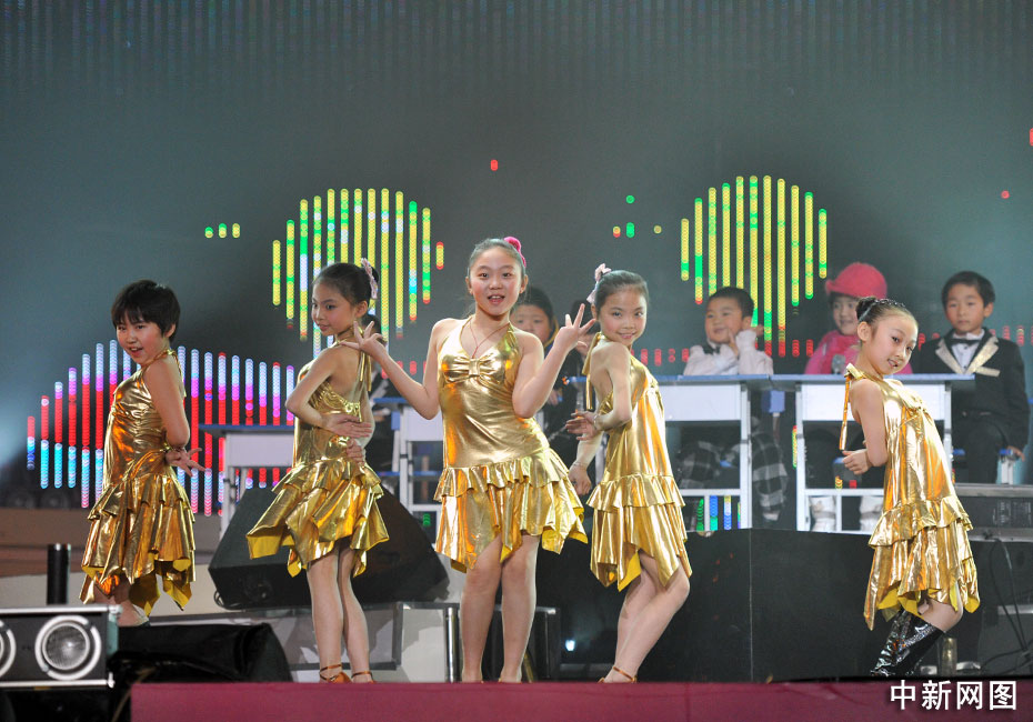 1月11日晚,第二届音乐风云榜新人盛典在京举行,盛典现场的音乐课上,儿童版的Wonder Girl、Super Junior、迈克尔·杰克逊、曾轶可、大张伟纷纷登台献艺,让现场观众们笑声不断。中新网记者 金硕 摄