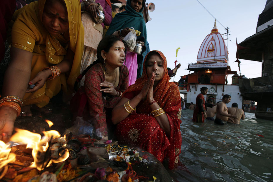 1月14日,数千名印度教信徒前往恒河参加世界上最大的宗教集会大壶节,并在印度圣河——恒河进行了沐浴仪式。图片来源:中国新闻网