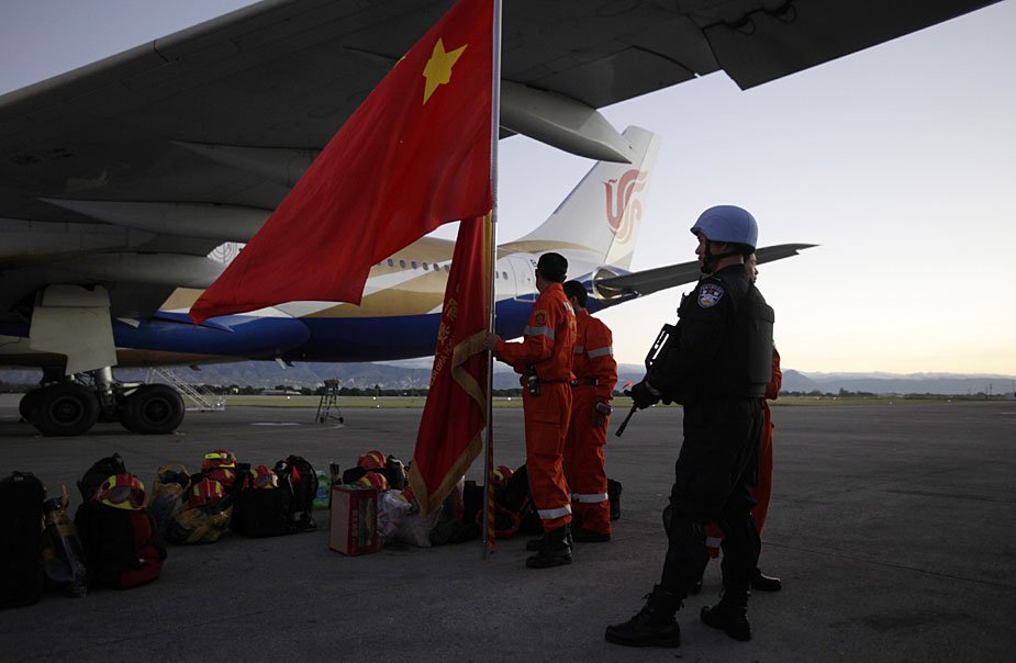 1月14日,中国国际救援队乘坐中国国际航空公司专机,飞行20个小时抵达海地首都太子港展开地震救援工作。