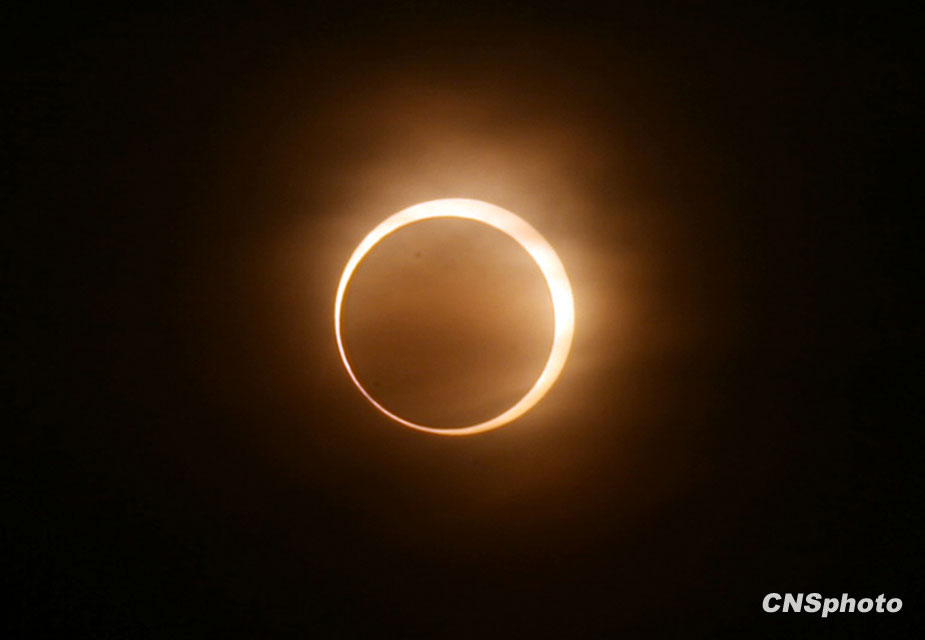 本世纪首场,也是全球未来1000年内环食持续时间最长的日环食1月15日划过天际。日环食带从印度洋经过缅甸进入中国国,由云南经四川省的部分地区,再穿过重庆市、湖北省西北部,直至华北地区。图片来源:中国新闻网