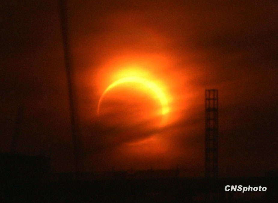 本世纪首场,也是全球未来1000年内环食持续时间最长的日环食1月15日划过天际。日环食带从印度洋经过缅甸进入中国国,由云南经四川省的部分地区,再穿过重庆市、湖北省西北部,直至华北地区。图片来源:中国新闻网