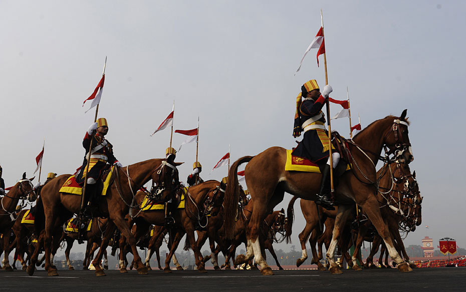 1月15日,在印度首都新德里举行的建军节阅兵式上,印度士兵接受检阅。图片来源:中国新闻网