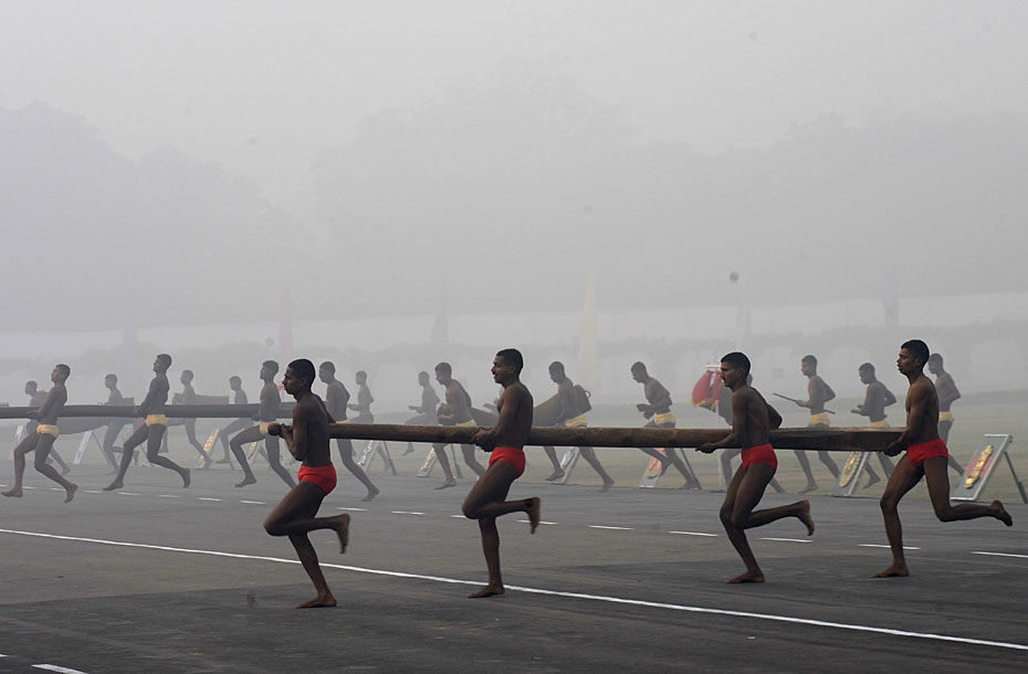 1月15日,在印度首都新德里举行的建军节阅兵式上,印度士兵接受检阅。图片来源:中国新闻网