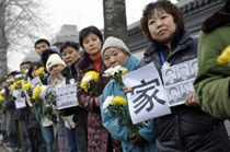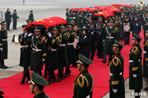 1月19日上午,在海地地震中牺牲的八位中国维和警察遗体回国接机仪式在北京首都机场举行。中新社记者 富田 摄