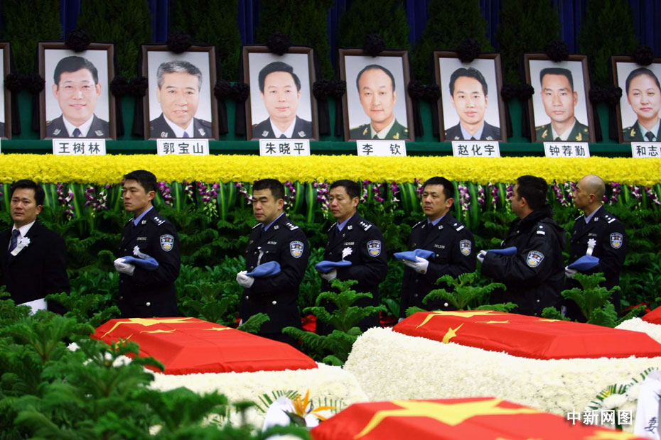 海地地震遇难中国维和警察遗体告别仪式1月20日上午9时在北京八宝山殡仪馆大礼堂举行。图片来源:中国新闻网