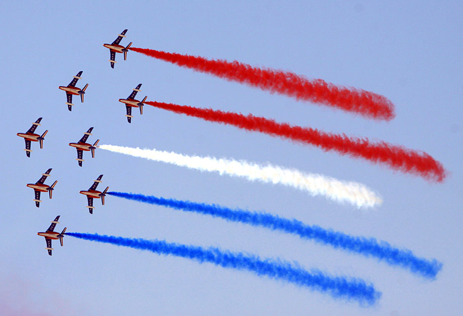 1月21日,巴林国际航空展在毗邻巴林F1赛场的SAKHIR空军基地开幕。在开幕式上,飞行表演队举行了异彩纷呈的飞行表演。图片来源:中国新闻网