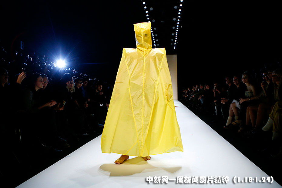 1月19日,一个模特在柏林时装上展示设计师帕特里克摩尔的服饰作品。 图片来源:中国新闻网