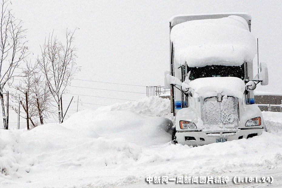 1月21日,美国亚利桑那州北部因大雪影响货车与客车均被迫停驶。图片来源:中国新闻网