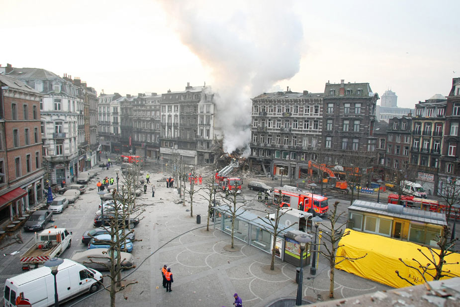1月27日,在比利时列日,一幢楼房发生煤气爆炸事件。据当地紧急情况处理部门说,有2人在事故中被掩埋,另有约40人受伤。图片来源:中国新闻网
