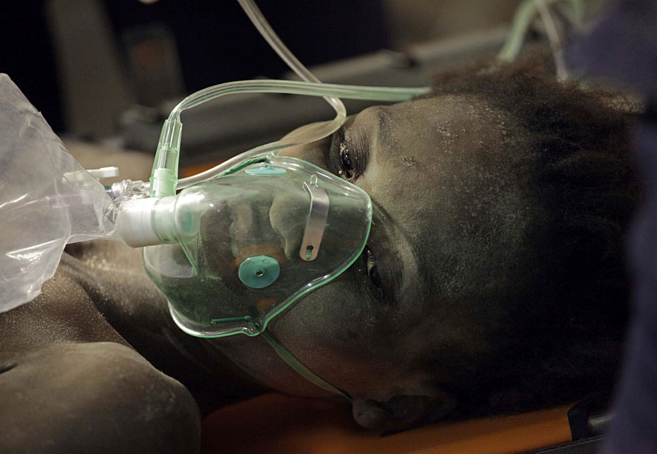 2010年1月27日,海地太子港,法国救援人员在一栋房屋的废墟下救出被困15天的16岁女孩黛琳娜·艾提尼(Daline Etienne)。女孩微弱的话语让大家着实吃惊:她竟是凭着随身的可乐挺了过来。图片来源:中国新闻网
