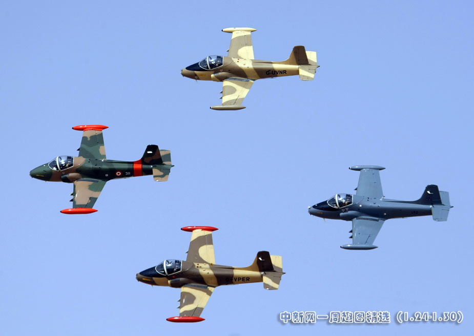 1月27日,在阿联酋艾因市国际机场举行了“音乐伴奏飞行展演”。图片来源:中国新闻网>>点击观看详细内容