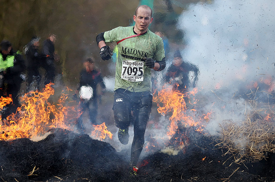 1月31日,在英国小镇Perton举行了一场硬汉挑战赛。图片来源:中国新闻网