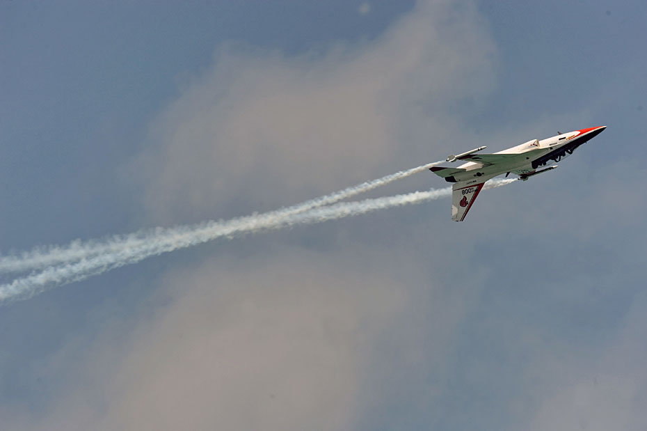 图为T-50教练机在进行飞行表演。
