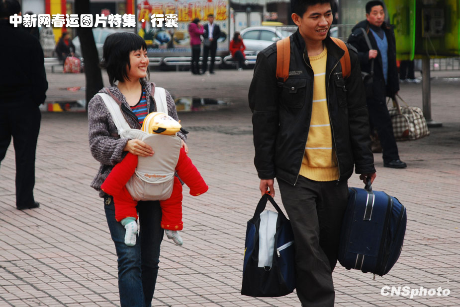 春节临近,出门在外的人拎着大包小包地回家过年。这行囊或重或轻,可能是带给父母的孝敬,也可能是带给爱人的心动,但每个行囊中一定都会装着人们一年来收获的喜悦之情。 中新社发 贺茂峰 摄