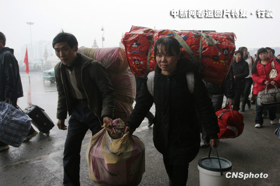 春节临近,出门在外的人拎着大包小包地回家过年。这行囊或重或轻,可能是带给父母的孝敬,也可能是带给爱人的心动,但每个行囊中一定都会装着人们一年来收获的喜悦之情。中新社发 孙新明 摄