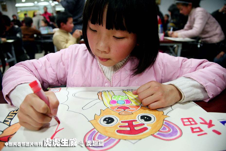 1月23日,“百童画百虎”活动在南京凤凰书城举行,约100名4岁到14岁的小朋友现场切磋画技,画出自己心中最可爱的老虎模样,迎接即将到来的虎年。中新社发 钟山 摄