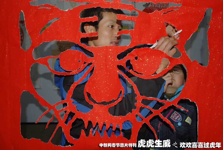 12月20日,来自安徽寿县的民间剪纸大师方军化作客江苏扬州中国剪纸博物馆表演撕纸绝技,现场徒手撕出的近百种形态各异的纸 “老虎”,让观众啧啧称奇。