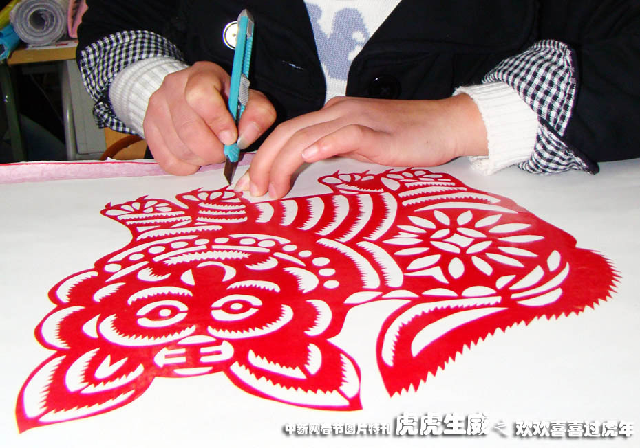 12月21日,重庆市云阳教师进修学院08级幼教班的学生在利用美术课“剪老虎”。中新社发 饶国君 摄