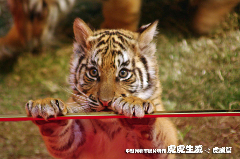 1月30日,虎年将至,重庆某商厦开展野生动物保护法宣传,“请”来几只活泼可爱的小老虎与市民近距离接触。中新社发 金城 摄
