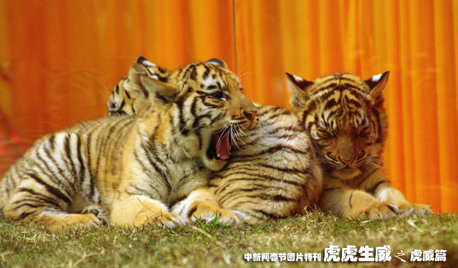 1月30日,虎年将至,重庆某商厦开展野生动物保护法宣传,“请”来几只活泼可爱的小老虎与市民近距离接触。中新社发 金城 摄