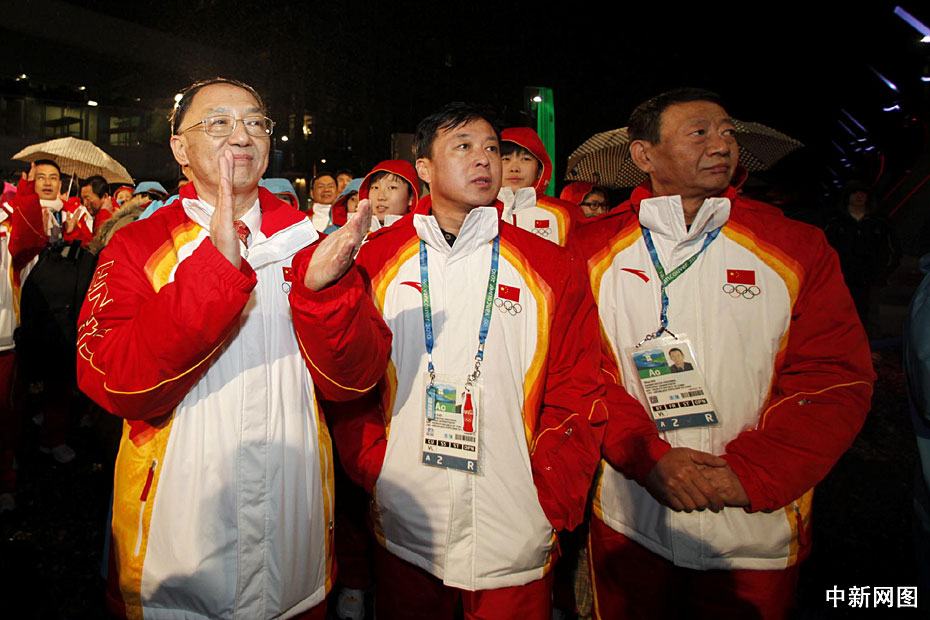 图为中国代表团团长刘鹏(左)等参加升旗仪式。