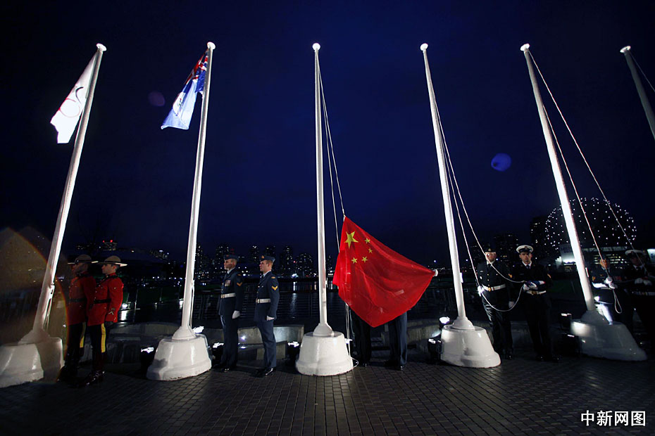 图为中国国旗在温哥华冬奥会奥运村升起。
