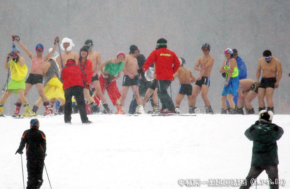 2月7日,备受瞩目的沈阳首届“光猪”滑雪狂欢节在沈阳森林公园东北亚滑雪场举行。当天,数十名参赛选手甩掉笨重冬装,换上泳装,纵情雪上。图片来源:中国新闻网>>点击观看详细内容